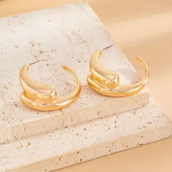 Elegant Retro Metal Hoop Stud Earrings – Irregular Geometric Charm