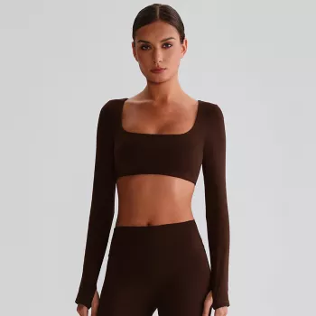 Women's Long Sleeve Square Neck Yoga Crop Top – Quick Dry, Breathable, Stylish